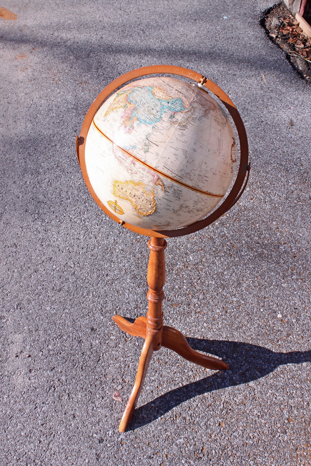 the globe and stand had some great bones. perfect condition. those little bumps where the mountains are … detailed graphics … sturdy … etc.