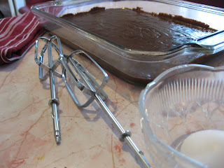 The recipe is quite simple. Prepare the brownies per the manufactures instructions (I prefer cake-like). Oh! and a special trick… instead of using plain water, as the recipe calls for, use coffee or instant coffee mix. Coffee has a delightful way of bringing out the flavor of chocolate.