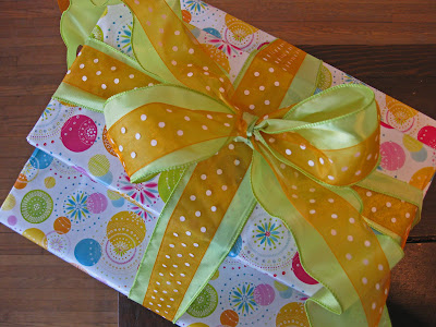 and, although a little ‘out-of-season’, this is how I wrapped my christmas gifts this past year. while the colors may not be appropriate for this time of year, the application can be used for any celebration.
