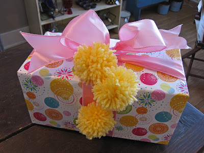 then i added some sweet homemade pom-poms to the package to make it a little more special. i found a pom pom making tutorial, but i need to do some searching to find the link. i’ll post it when I do.