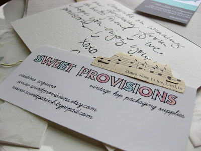 hi michael! i’m making my way around blogland for MUCH overdue comments! thanks so much for the sweet kudos for the little prize goodies. i’m so glad you enjoyed everything and truly i’m so pleased you enjoyed the packaging as that’s my very favorite part! i’m so happy to have found your blog and will be a frequent visitor. 🙂 you crack me up about your bus. cards! in reply to your questions…i designed both of my cards…the sweet provisions card i actually printed out at home and the sweet pea ink card i had professionally printed using my design. xoxo