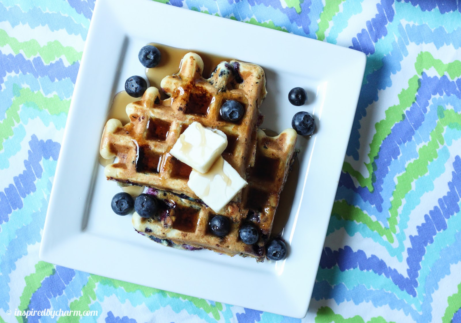 Then plate up your waffles with a little way too much butter and some more fresh blueberries.